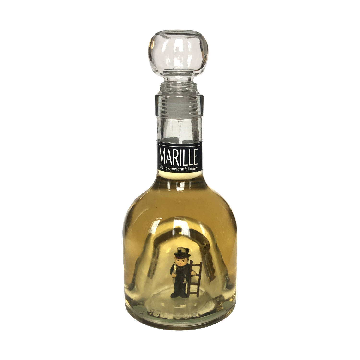 Gefäß, aufwendig gearbeitet mit Schornsteinfeger Figur im Inneren der Flasche